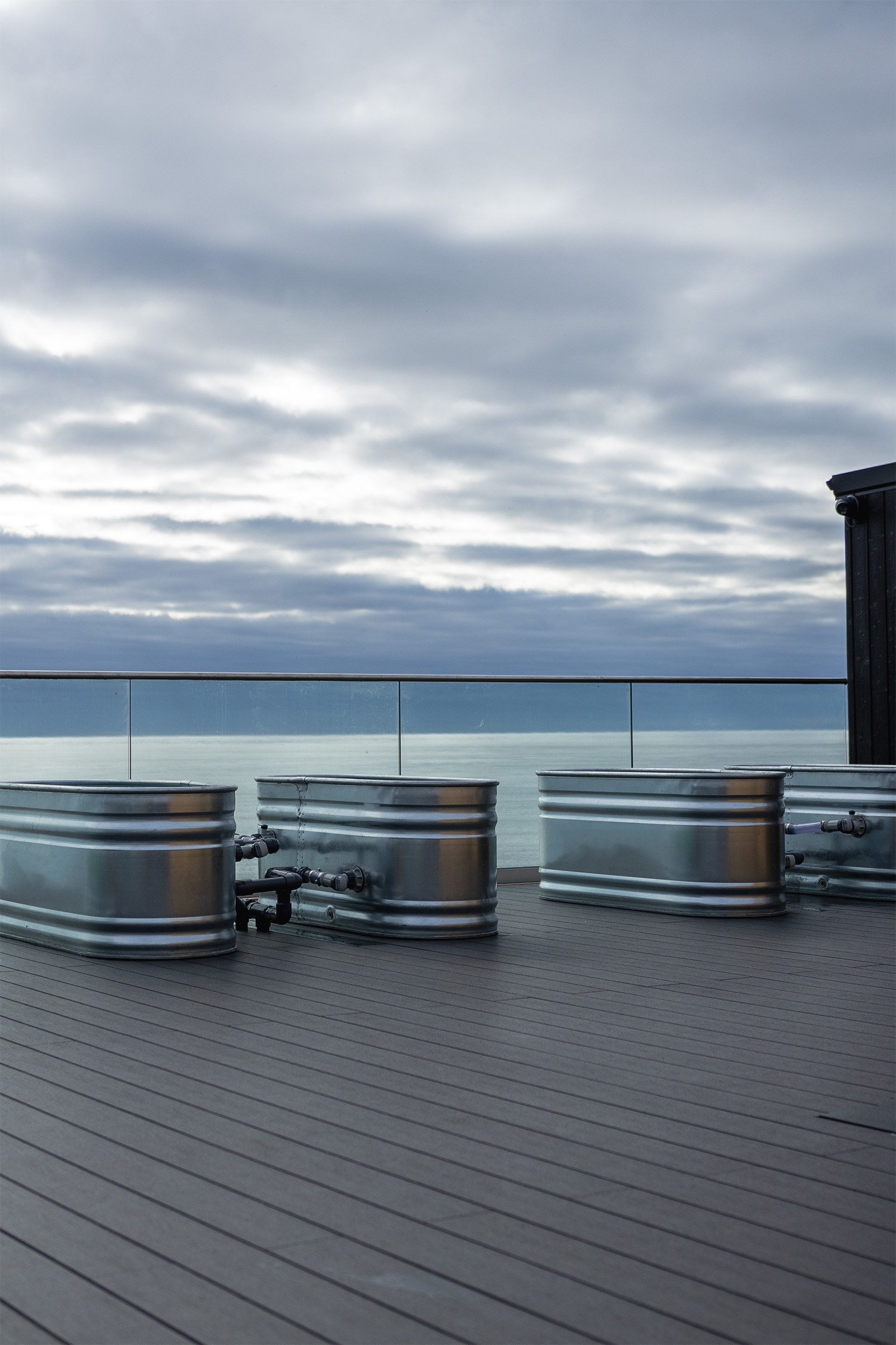 Enjoy the refreshing easterly Irish coastline from a rooftop vantage point, with access to hot tubs, plunge pools, and three unique saunas—offering the full benefits of contrast therapy in a truly immersive outdoor setting.